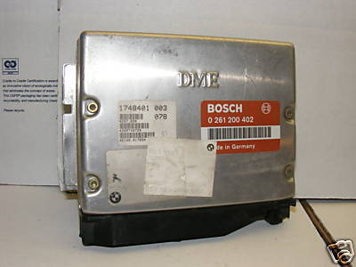 BMW E30 / E34 ECU Up for sale is a Working, in excellent condition BMW E30 ECU. Bosch Part number-- 0 261 200 402 (0261200402), BMW part number 1748401. This unit should fit some, E30 & E34 and possibly E36 325i 528i 525i models and is in good working order. This should directly replace 0261200403 and 0261200405 This may also work with other models/years but as usual check your part number off of your original to be sure it will work with your car.These units can be purchased NEW at an authorized bosch service center or your BMW dealer, however typical cost is over $2000 for a new Bosch control unit! Ouch not here! This is a good used unit here. These are even not at all easy to find good used with a warranty, at any price much less as fair as this - and we give a 30 day warranty! These are usually fairly reliable, however can easily be damaged by wiring faults or voltage spikes (caused by a faulty alternator) or just age and mileage accumulated - no electronic component lasts forever. . A faulty ECU can cause problems ranging from a bad idle control circuit to random no injector pulse signal (causes no start or random cut outs) & many others. If you need one of these units, there is no reason to spend $2000 on a new unit, get a good used one for less than you'd pay in tax alone at the dealer.